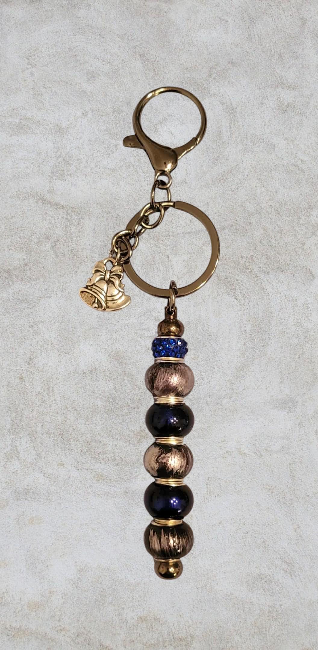 Option 1 - Gunmetal Keychain w/Silver Tone Bell Charm - 15 x 11mm Silver and Blue Murano Glass Beads with Blue Rhinestone Spacer Bead. Keychain measures approximately 5 3/4" x 1". Bell Charm measures approximately 3/4" x 1/2".