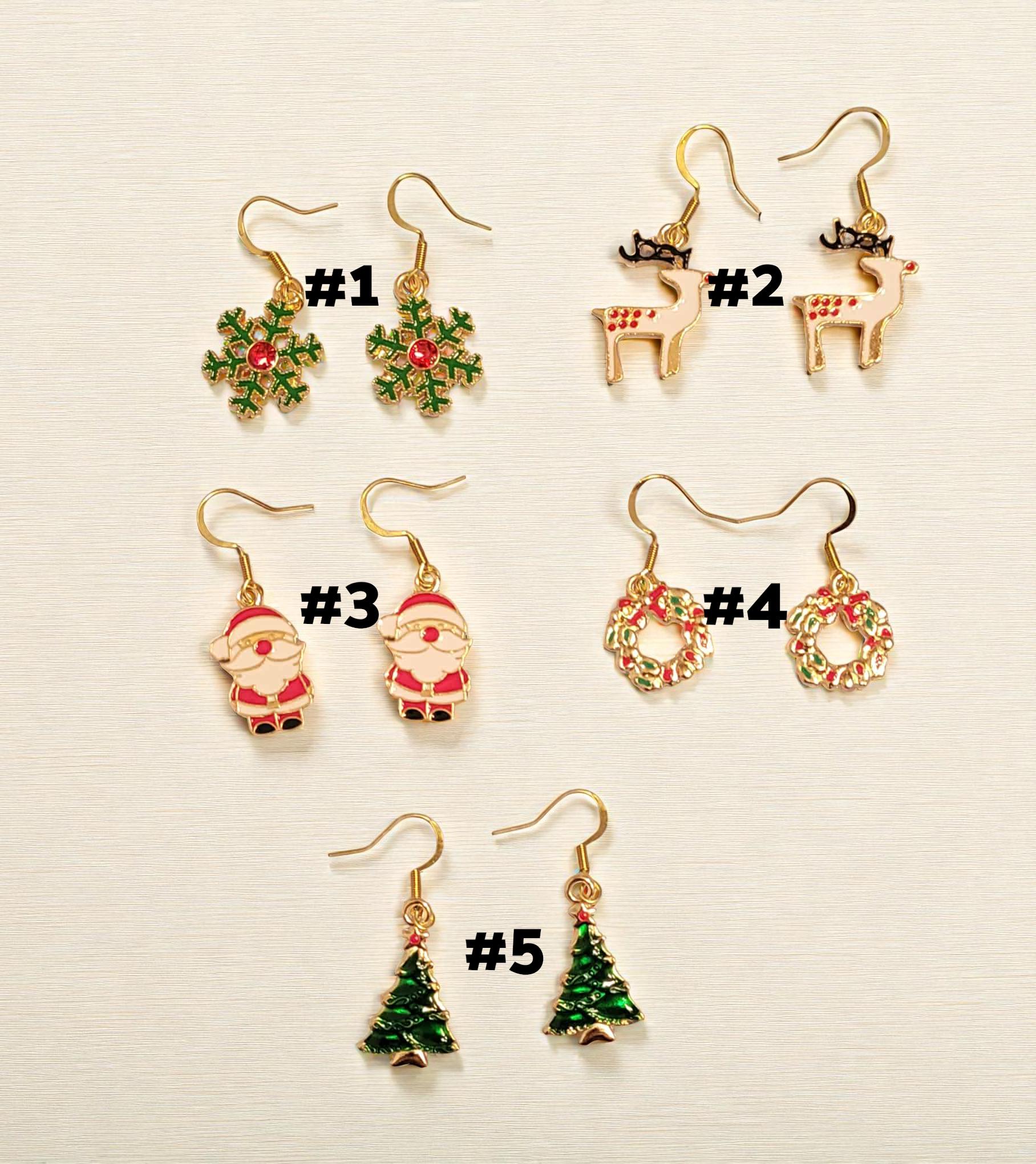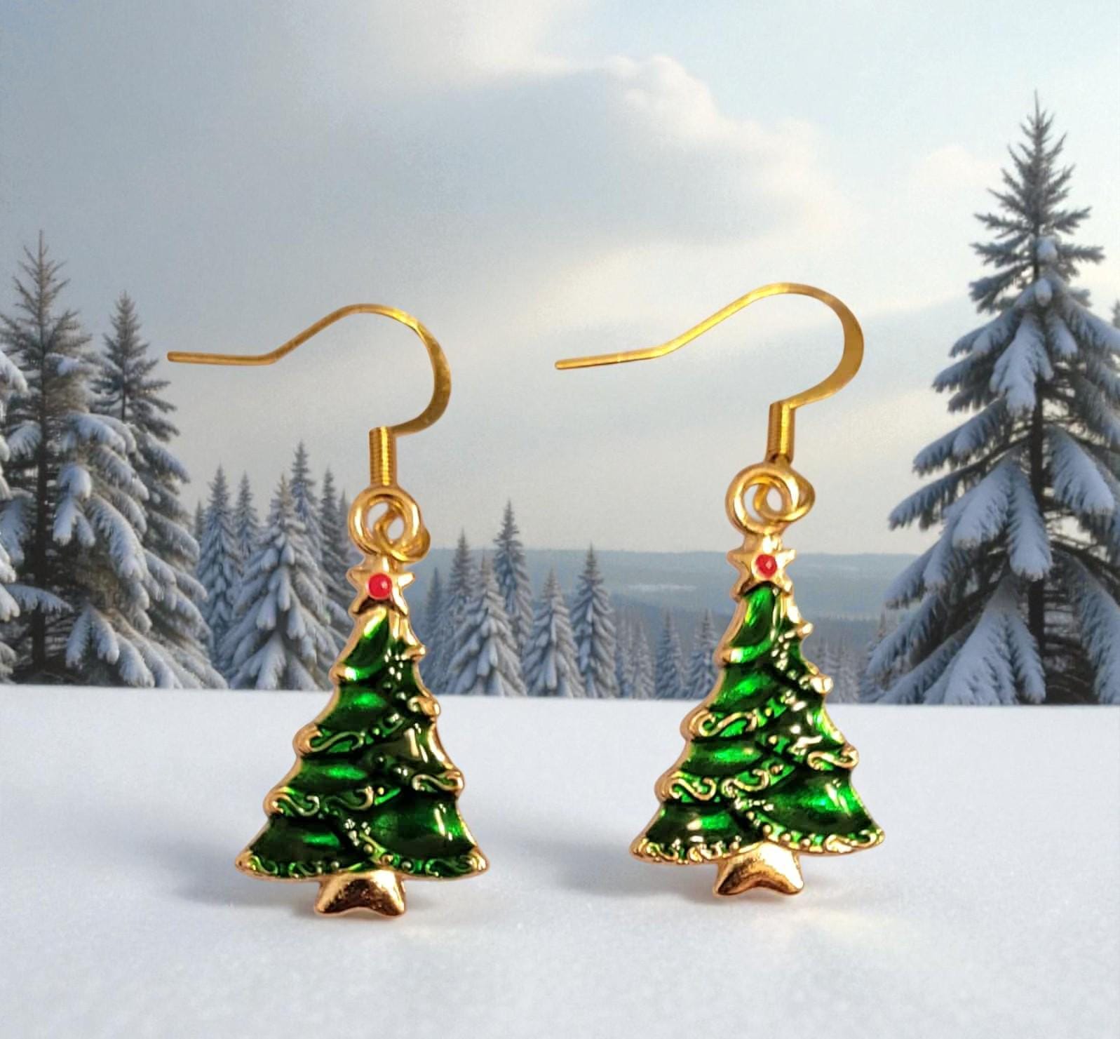 Option 5 - Christmas Tree - Gold tone with green and red enamel. Earrings measure approximately 1 1/4" x 1/2".