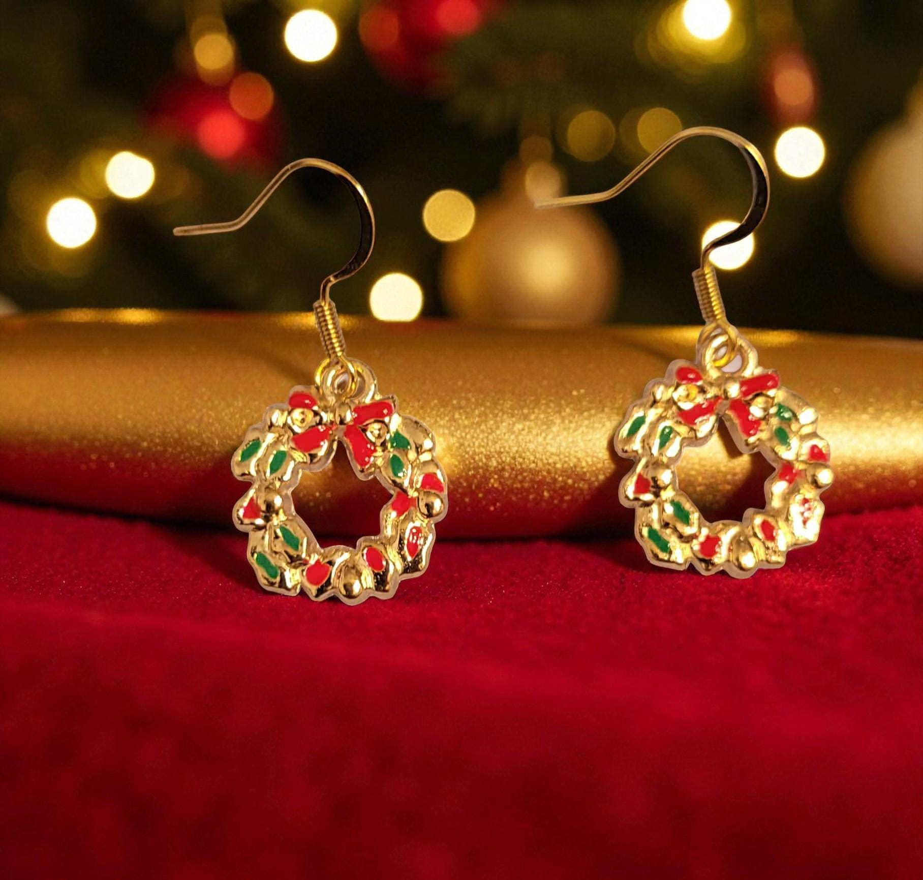 Option 4 - Wreath - Gold tone with red and green enamel. Earrings measure approximately 1" x 1/2".
