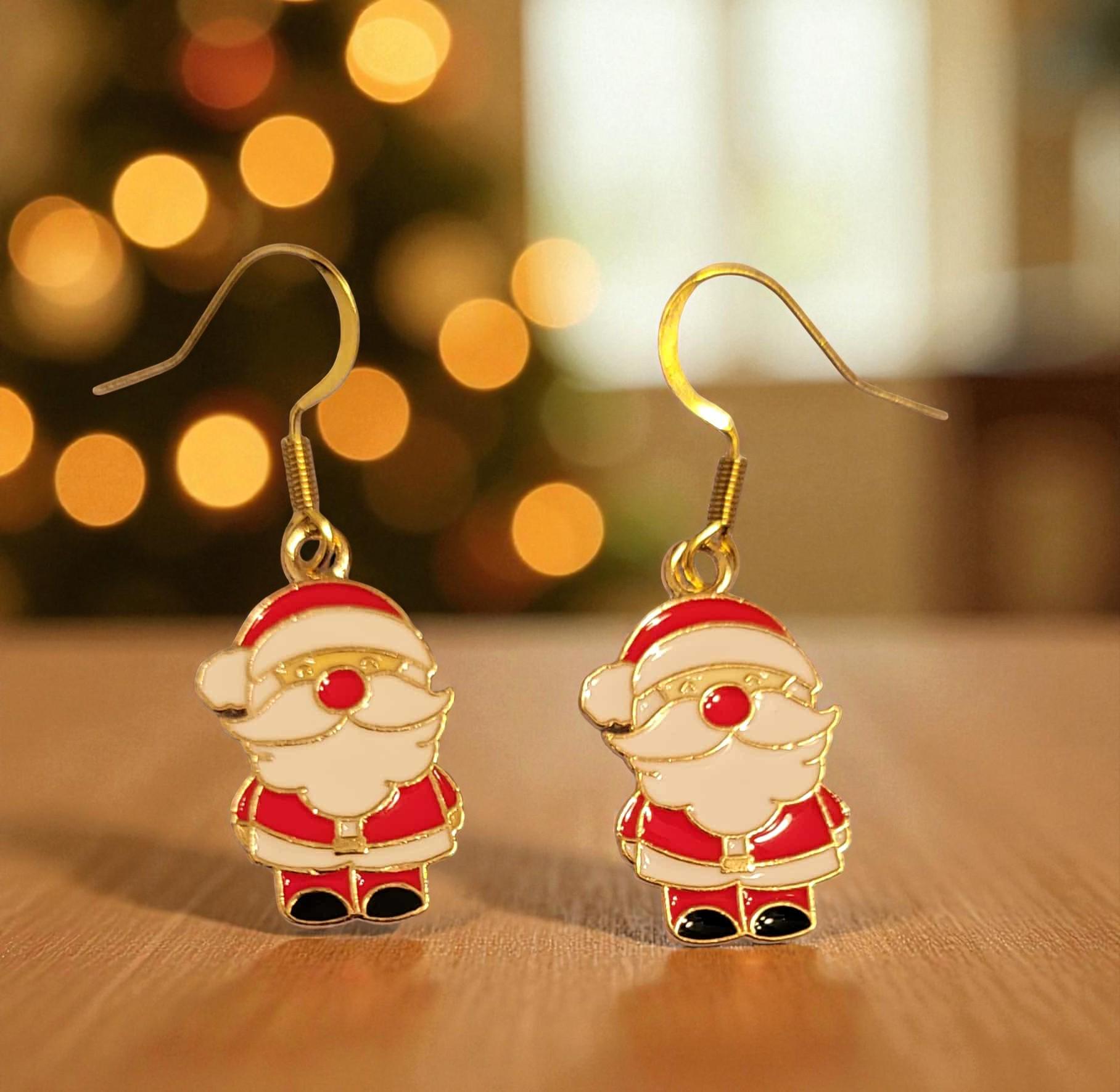 Option 3 - Santa - Gold tone with red, white, and black enamel. Earrings measure approximately 1 1/4" x 1/2".