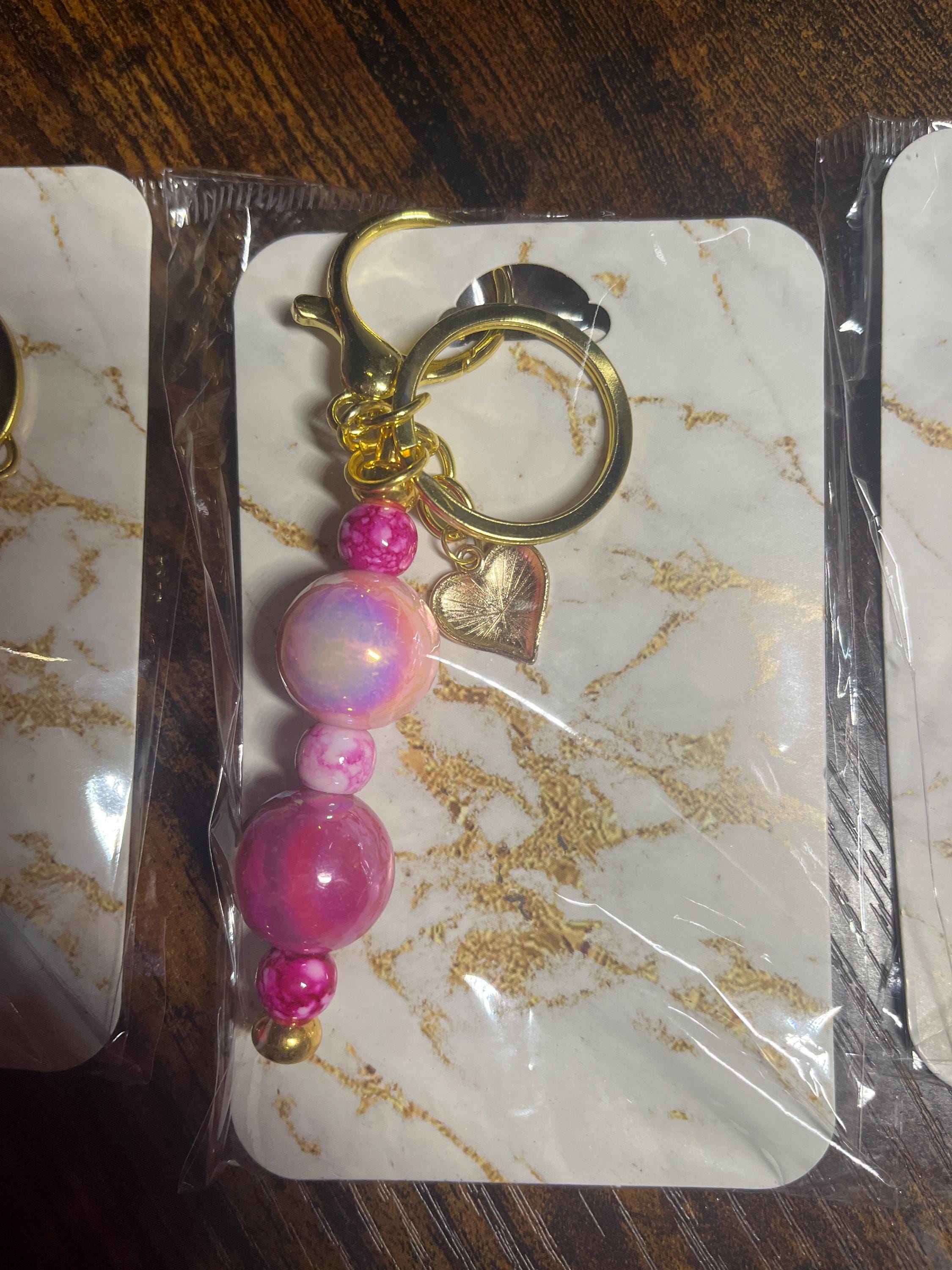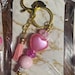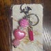 Option 3 - Gold Tone Keychain with pink marbled spacer beads, pink swirled acrylic beads, and a pink sparkle heart charm,